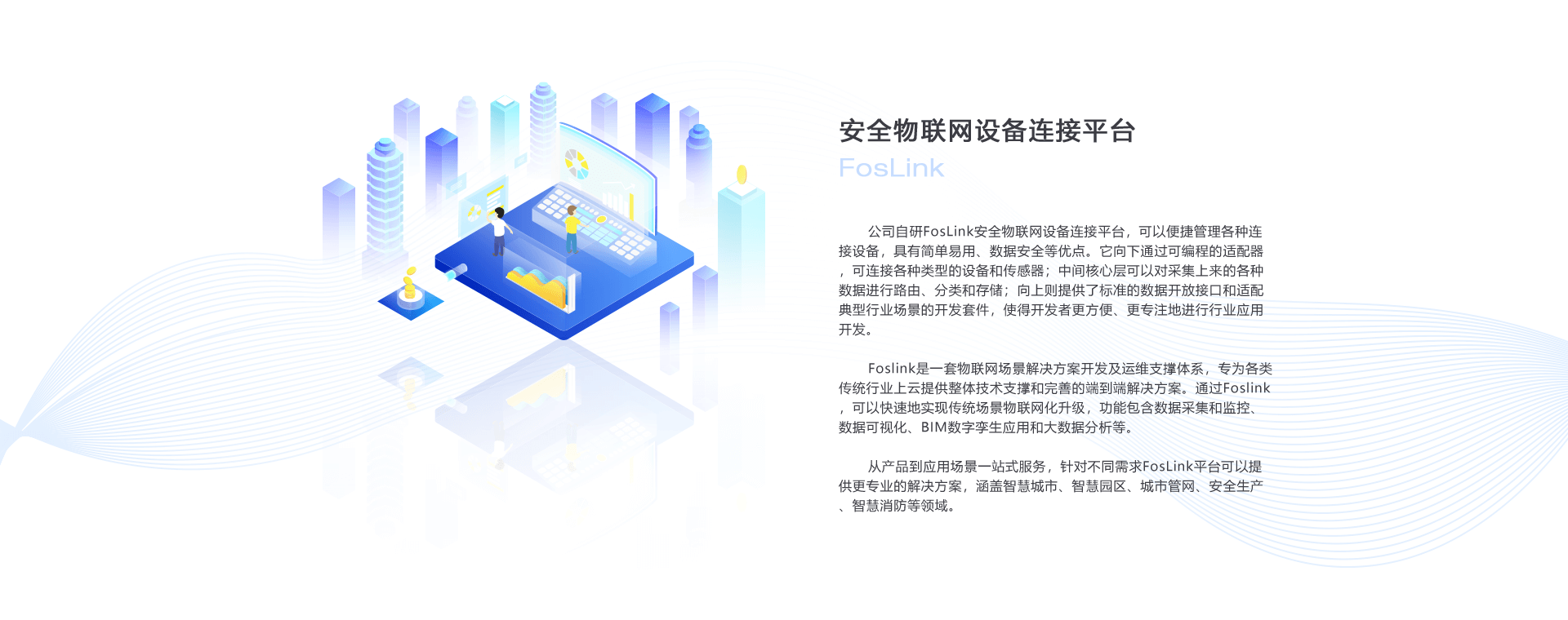 Foslink是一套物聯(lián)網(wǎng)場景解決方案開發(fā)及運維支撐體系,專為各類傳統(tǒng)行業(yè)上云提供整體技術支撐和完善的端到端解決方案。通過Foslink,可以快速地實現(xiàn)傳統(tǒng)場景物聯(lián)網(wǎng)化升級,功能包含數(shù)據(jù)采集和監(jiān)控、數(shù)據(jù)可視化、BIM數(shù)字孿生應用和大數(shù)據(jù)分析等。